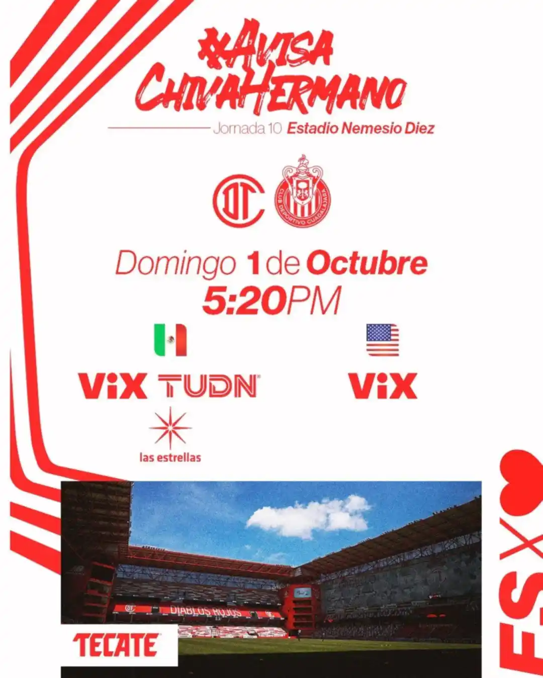¿Dónde y a qué hora ver el partido entre Chivas y Toluca de la Jornada 10?
