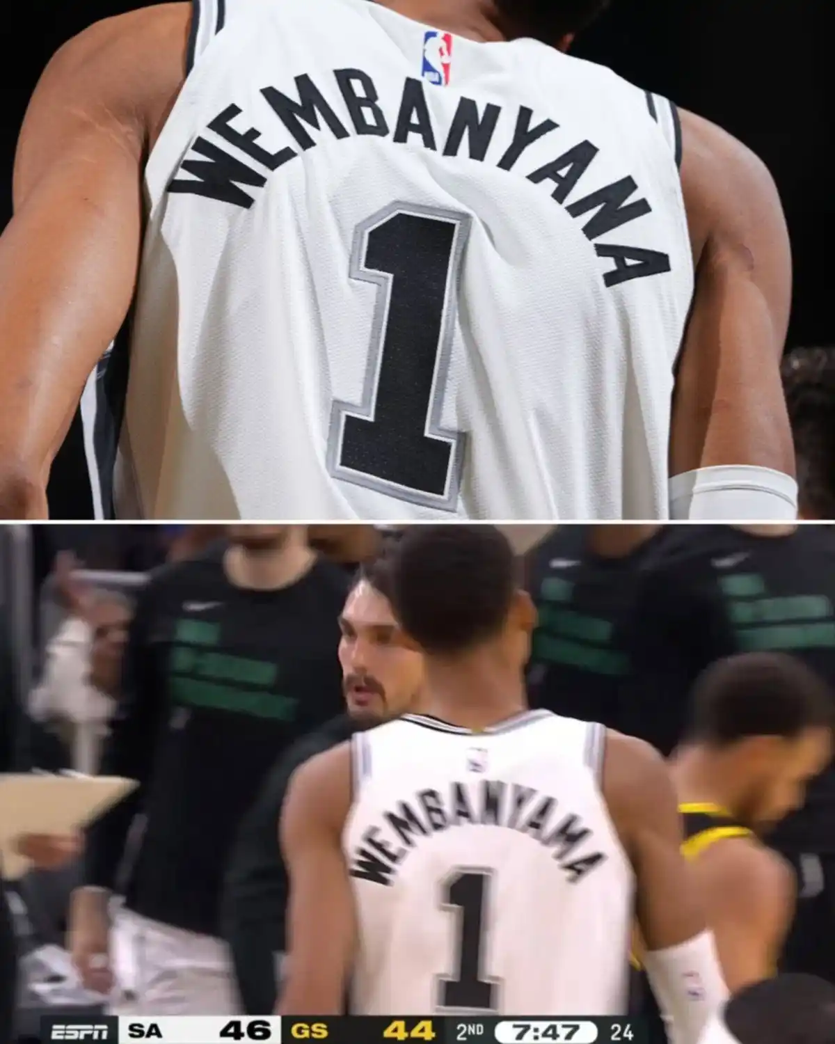 Al encuentro lo rodeaba mucha expectativa. Por el enfrentamiento entre Stephen Curry y Wemby, sobre todo. Pero rápidamente lo deportivo quedó opacado cuando en la televisación notaron algo extraño. Era la camiseta de Victor Wembanyama. Encima del “1”, su dorsal, el francés tenía escrito “Wembanyana”, en lugar de “Wembanyama”, con “m”; como se escribe en realidad su apellido.