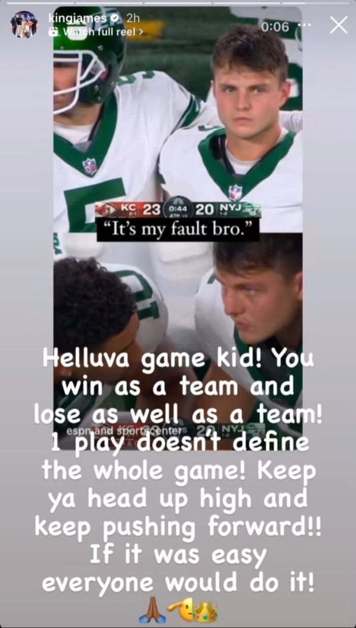 El encuentro estelar del fin de semana en la NFL fue sin duda el que llevaron a cabo los New York Jets contra los Kansas City Chiefs. No solo por el atractivo del partido o por Patrick Mahomes, sino por la presencia de Taylor Swift en las gradas, quien acompañó a su pareja Travis Kelce. El partido, de muchísima exposición, era una oportunidad para que el criticado mariscal de 24 años del equipo de New York, Zach Wilson, se reivindicara. A pesar de un gran nivel, cometió un error costoso que no se perdonó, y algunas figuras como LeBron James le expresaron su apoyo.