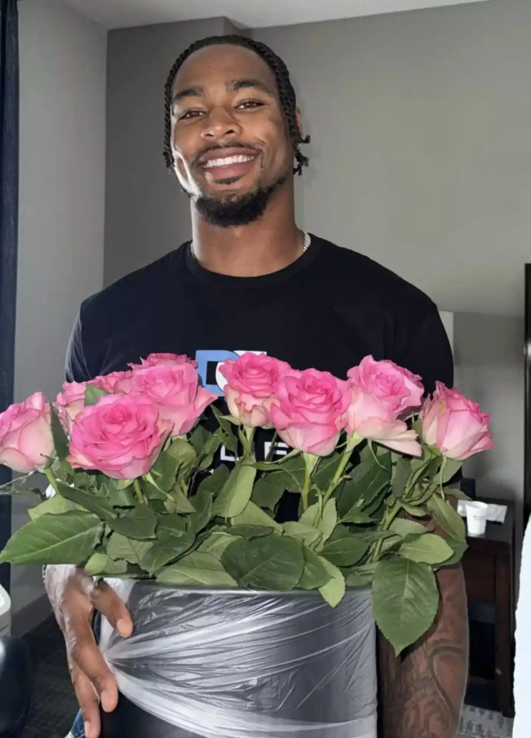Owens besó a su esposa en el siguiente video y chocaron vasos de bebidas coloridas para brindar en la siguiente imagen. La última foto del conjunto reveló que Owens hace grandes y sentimentales gestos al celebrar a su esposa. Sonrió para la cámara mientras sostenía una maceta llena de rosas rosadas en la dulce instantánea.