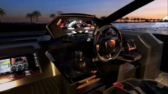 La embarcación llama poderosamente la atención debido a su su estructura, de líneas modernas y elaborada con fibra de carbono. El color del casco es del mismo verde que el Lamborghini Sian FKP 37, modelo en el que se inspira y además cuenta con un volante igual al del Lamborghini Aventador.