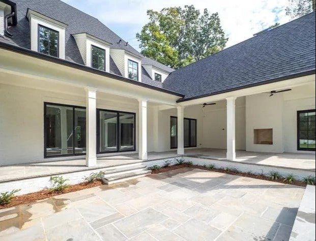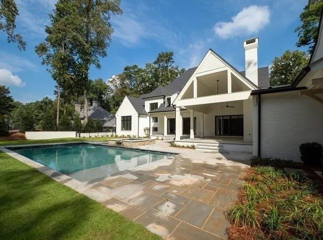 Además de un interior sólido, la casa también cuenta con un impresionante espacio exterior. Algunas comodidades al aire libre incluyen un patio cubierto con chimenea, un porche cubierto, una piscina y un amplio patio trasero con suficiente espacio para una cancha de baloncesto. El patio delantero también contiene una gran cantidad de espacios verdes ideales para la jardinería.