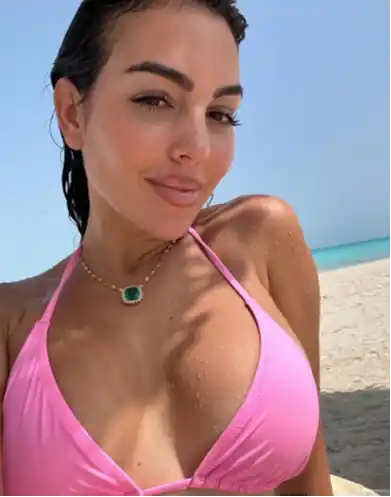 Con bikinis de alta gama y accesorios deslumbrantes, Georgina presume de curvas y joyas.