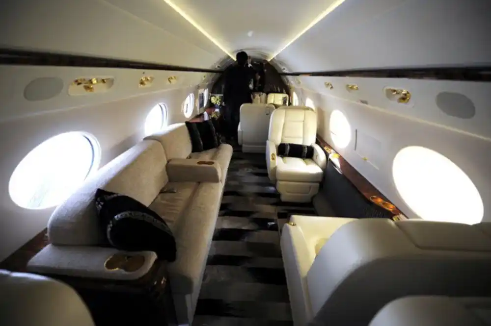 El increíble Jet privado que ostenta Tiger Woods es el modelo Gulfstream G550 y alcanza velocidades de 680 mph y cubre un alcance de 8000 millas.
