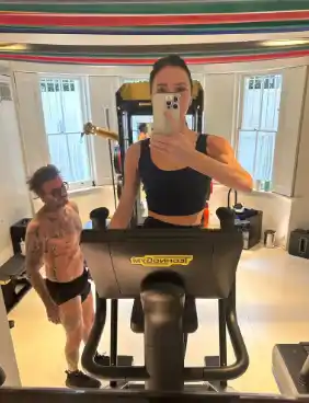El ejercicio también es un momento para compartir con su esposo David. La pareja a menudo publica videos de sus sesiones de entrenamiento conjunto, convirtiendo el ejercicio en una actividad divertida y social. Estos momentos no solo fortalecen sus cuerpos, sino también su relación.