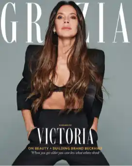 Victoria Beckham revoluciona la moda combinando trajes con ropa interior visible en la portada de Grazia.