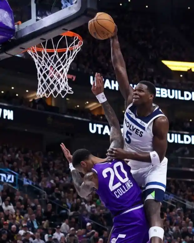Pero Edwards no es más futuro que presente. En el partido que jugó su equipo frente a Utah Jazz, que terminó en victoria de los Wolves por 114-104, con 32 puntos del joven escolta, fue el autor de una jugada memorable. Faltaban cinco minutos para el final del tercer cuarto y el propio Edwards tomó un balón suelto y comenzó el contraataque. Se la pasó a Nickeil Alexander-Walker, este se lo devolvió y el número 5 saltó por encima de su rival John Collins para anotar una espectacular volcada.