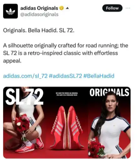Adidas, consciente de la sensibilidad del tema, emitió un comunicado pidiendo disculpas por cualquier malestar causado. La marca retiró a Bella Hadid de la campaña de inmediato y prometió seguir adelante con otras figuras públicas para promocionar el modelo. La elección de Hadid para la campaña generó una ola de críticas en las redes sociales, especialmente entre figuras de alto perfil y usuarios que cuestionaron la decisión de la marca.