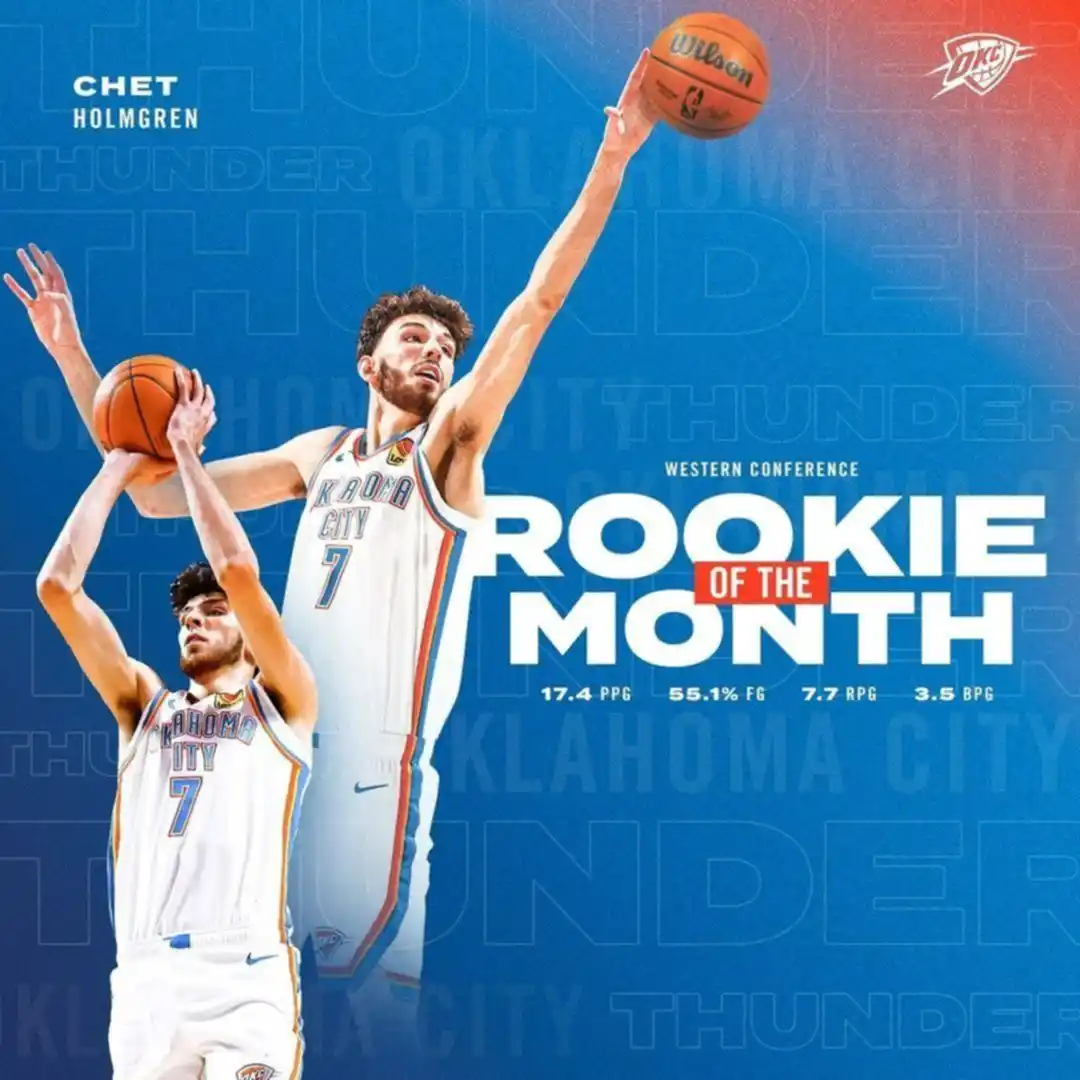 El jugador de los Oklahoma City Thunder, clave en los buenos resultados de su equipo, se convierte en un fuerte competidor para el joven francés, Victor Wembayiama, por ser el mejor rookie del año. Cabe destacar que el equipo en el cual se desempeña Wemby, marcha último en la Conferencia Oeste, mientras que Los Oklahoma City Thunder de Chet Holmgrem marchan segundos en la misma conferencia. Un dato no menor para tener en cuenta quien va a ser el Novato del Año en la NBA.