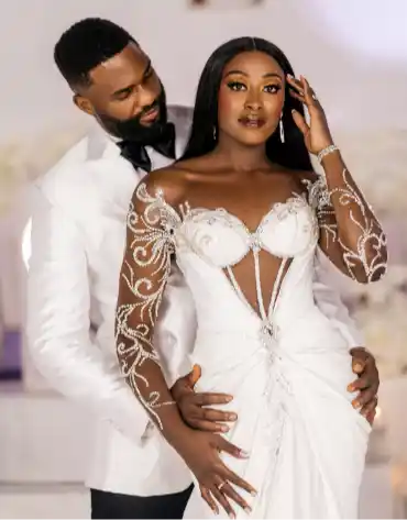 La segunda parte del evento se llevó adelante el 18 de noviembre y fue lo que ellos llaman como una “boda blanca”. Para ella, la novia usó un vestido tradicional nigeriano con una cola desmontable de 10 pies. Más tarde se puso un vestido de fiesta negro con aberturas en la cadera y pedrería ombré.