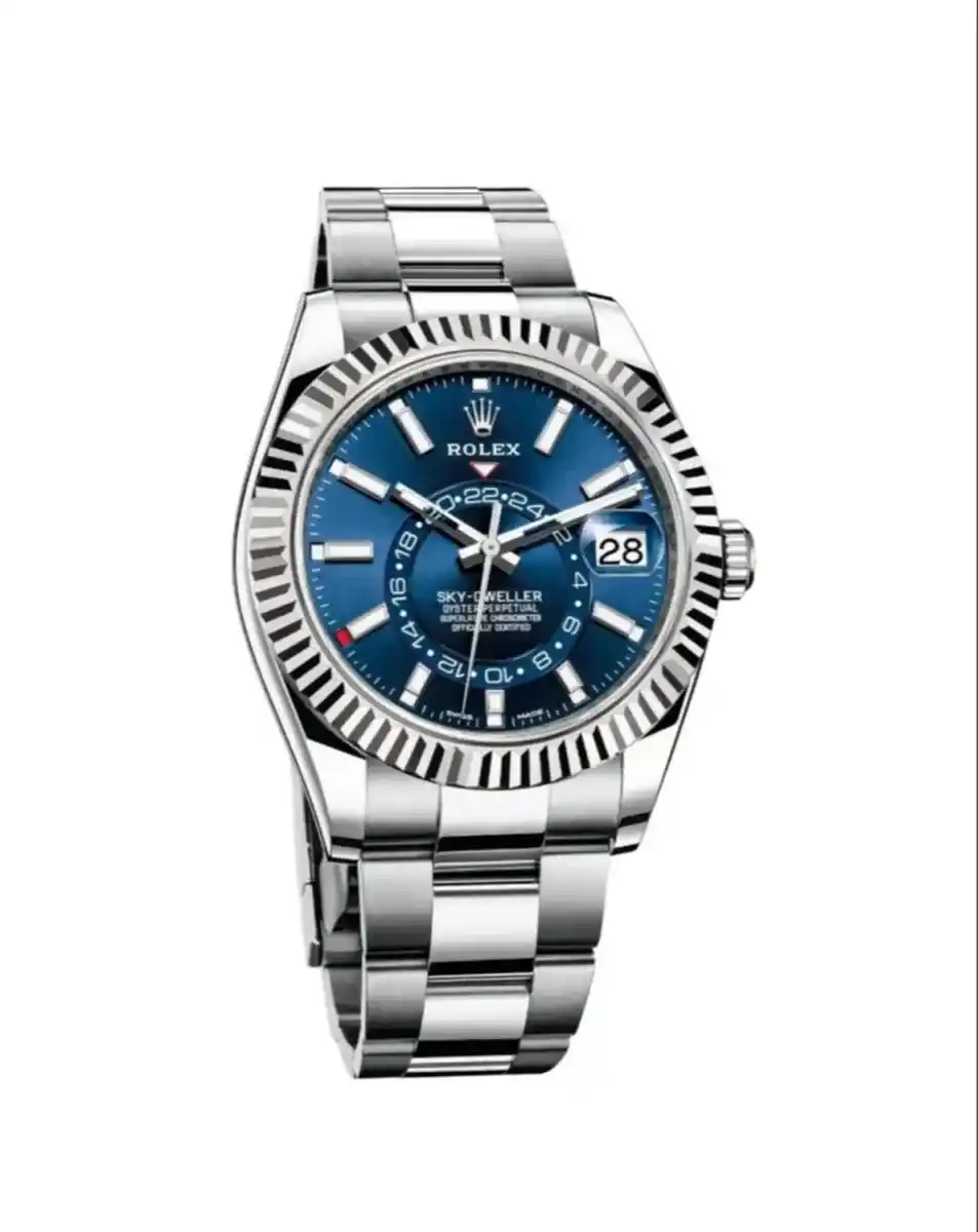 Todas las funciones pueden ajustarse mediante el sistema Ring Command girando el bisel en el sentido contrario a las agujas del reloj una, dos o tres veces dependiendo de lo que se desee modificar (hora, hora de referencia o día y mes). Es uno de los modelos más y con más características de Rolex, así que no es sorpresa que haya cambiado el GMT-Master II por el Sky-Dweller.