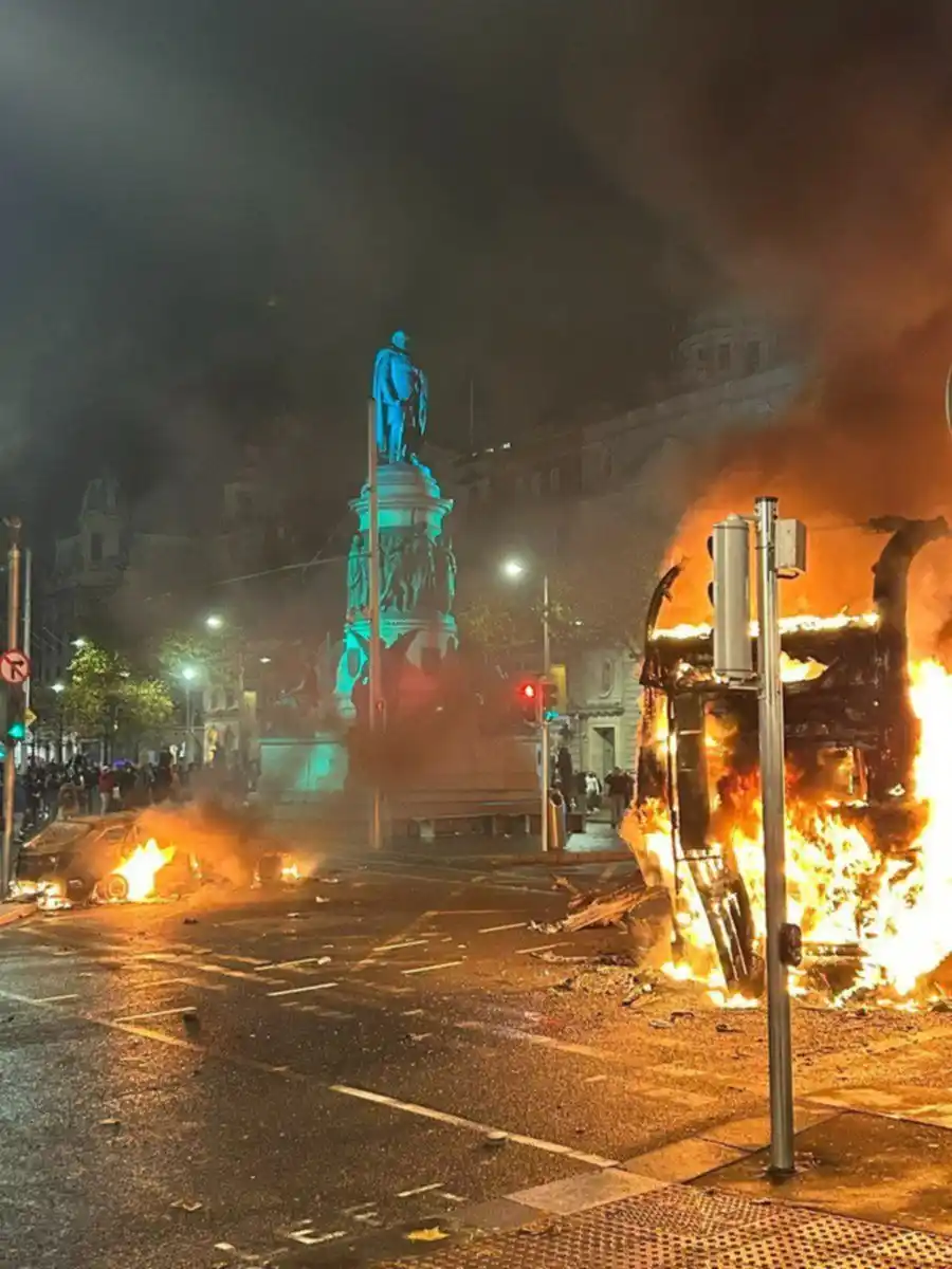 Dublín está en el ojo de la tormenta. La ciudad de Irlanda sufre una oleada de desórdenes públicos en las calles, que ha acabado con coches y autobuses quemados, tiendas saqueadas y una decena de detenidos