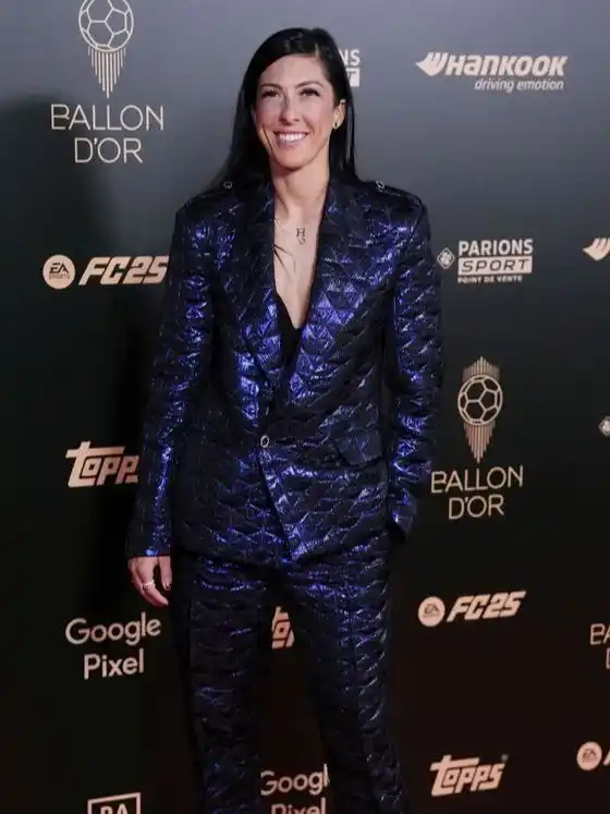 La de Alexia Putellas era otra de las presencias esperadas. La española fue dos veces ganadora del Balón de Oro (2021 y 2022) y estuvo presente para observar como su compañera, Bonmatí, se llevaba el suyo. Putellas optó por una blazer de esmoquin negra, pantalones de raya diplomática y tacones de punta.