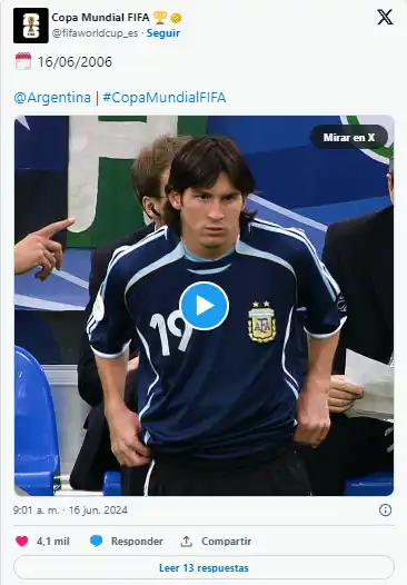 En el video, se podía ver a un joven Messi luciendo la camiseta número 19 e ingresando al partido contra Serbia en lugar de Maxi Rodríguez. Desde entonces, Messi fue un pilar en la Selección de su pais en cada Copa del Mundo, demostrando su talento y compromiso en el más alto nivel del fútbol.