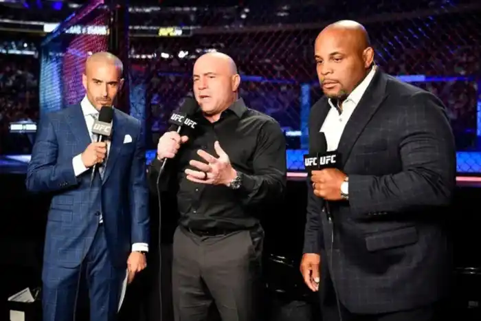 Joe Rogan, actor, comediante y ex presentador de televisión estadounidense de UFC, asistió al evento y ocupó un lugar en la mesa de comentaristas junto a Daniel Cormier, ex peleador de artes marciales mixtas.