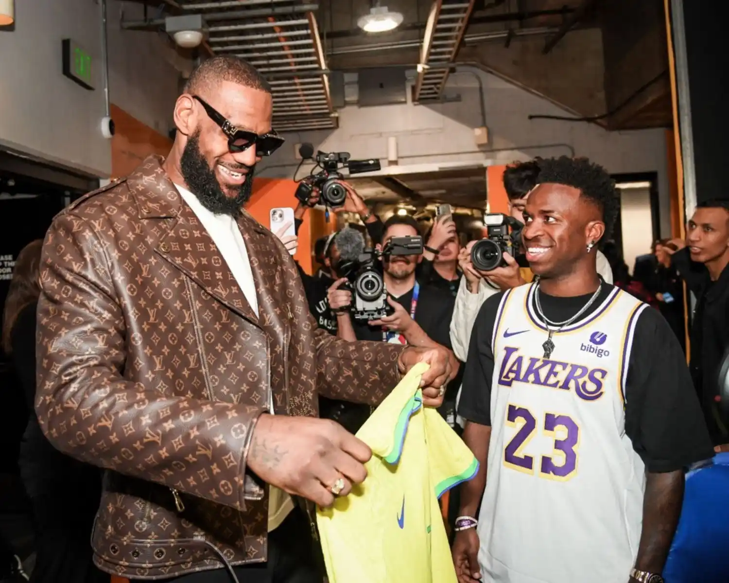 Tras el partido, “Vini” y Camavinga se reunieron con el ídolo de 39 años e intercambiaron regalos. Vinicius le ofreció a un “King James” vestido con campera y anteojos la camiseta que usa en la selección de Brasil, con el dorsal 7; y LeBron, su camiseta 23 de los Lakers autografiada. Se tomaron algunas fotos y al jugador del Real Madrid le costó ciertas críticas. Varios fanáticos españoles le cuestionaron en redes sociales que le diera la camiseta brasileña y no la merengue.