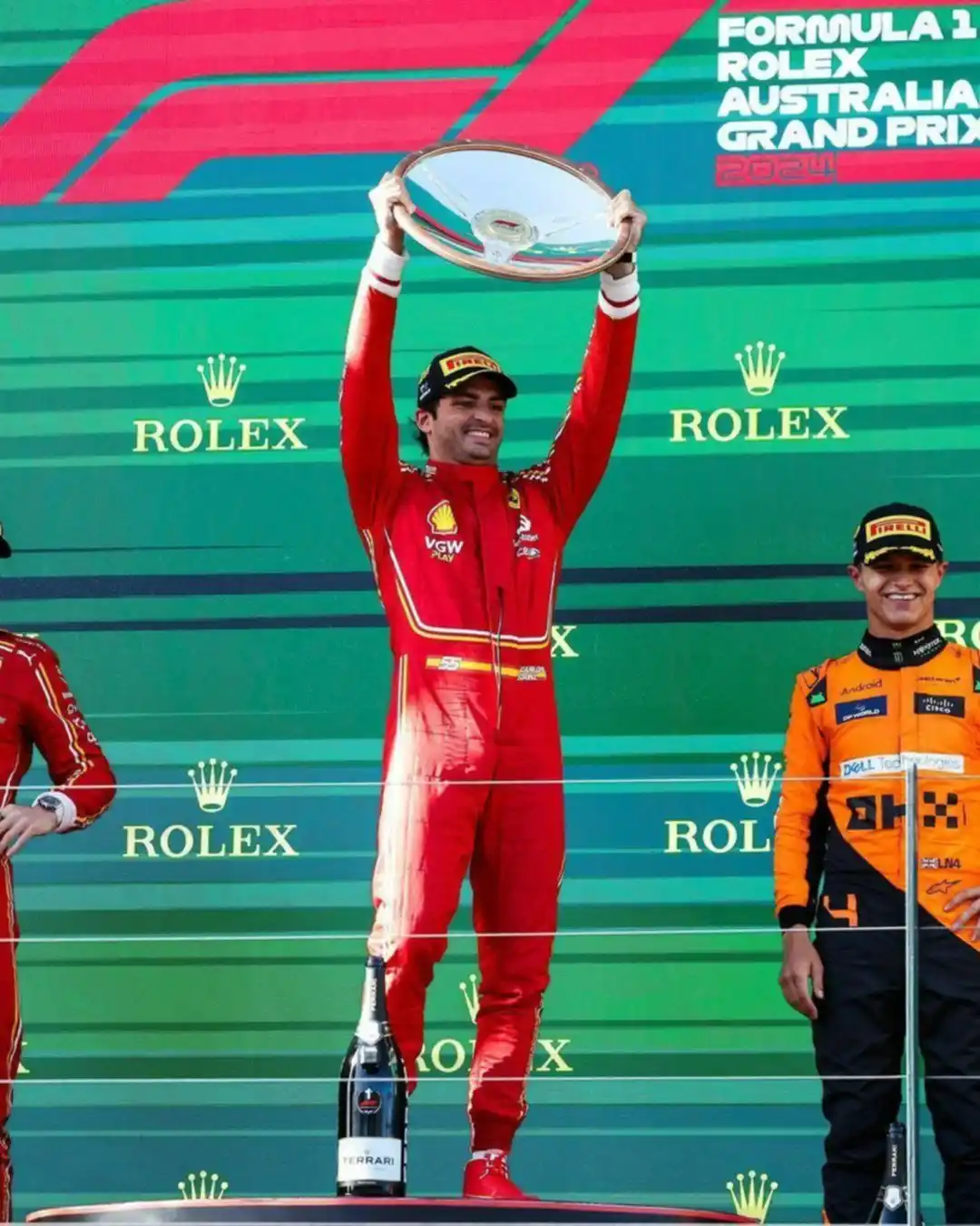 La victoria de Carlos Sainz cuenta con un valor agregado ya que el piloto español viene de ser operado tras sufrir apendicitis hace tan solo unos días atrás. Con Max Verstappen y Lewis Hamilton fuera del panorama, el piloto de Ferrari, sin muchos sobresaltos, dominó el circuito y lideró casi todas las vueltas. Además, Ferrari logró los dos primeros puestos del podio (Charles Leclerc finalizó segundo), algo que no sucedía desde el Gran Premio de Bahrein en el año 2022.