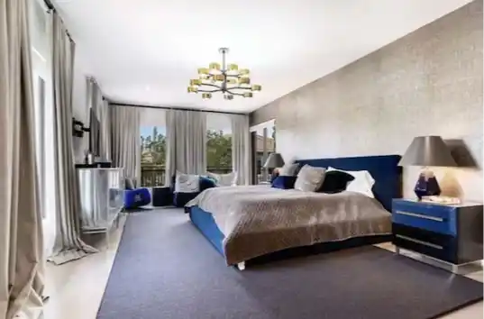 El interior de la mansión refleja el gusto por la comodidad y el lujo. Entre sus características más destacadas se encuentran un gimnasio completamente equipado, ocho dormitorios en suite, un spa y un garaje con espacio para tres vehículos. La cocina, de estilo italiano, cuenta con una gran isla ideal para desayunos familiares, mientras que el salón principal está decorado con un sofá semicircular que permite una vista directa a la televisión, creando un espacio perfecto para disfrutar de momentos de ocio en familia.