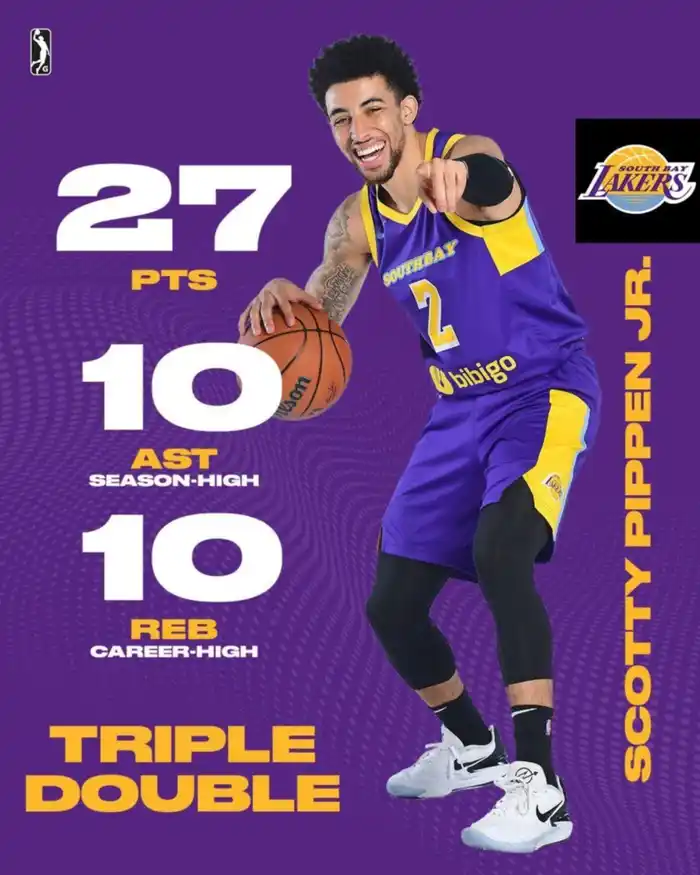 En el encuentro frente a los South Bay Lakers, Almansa jugó 27 minutos y solo falló un tiro de campo; hay razones para confiar. De todos modos, el protagonista de haberle amargado la noche tiene nombre y apellido; muy famosos, por cierto: se trata de Scotty Pippen Jr., hijo de Scottie Pippen, socio de Michael Jordan en la dinastía de los Chicago Bulls en la década del 90. El jugador de 23 años anotó 27 puntos, 10 rebotes y 10 asistencias. Un triple-doble; brillante.