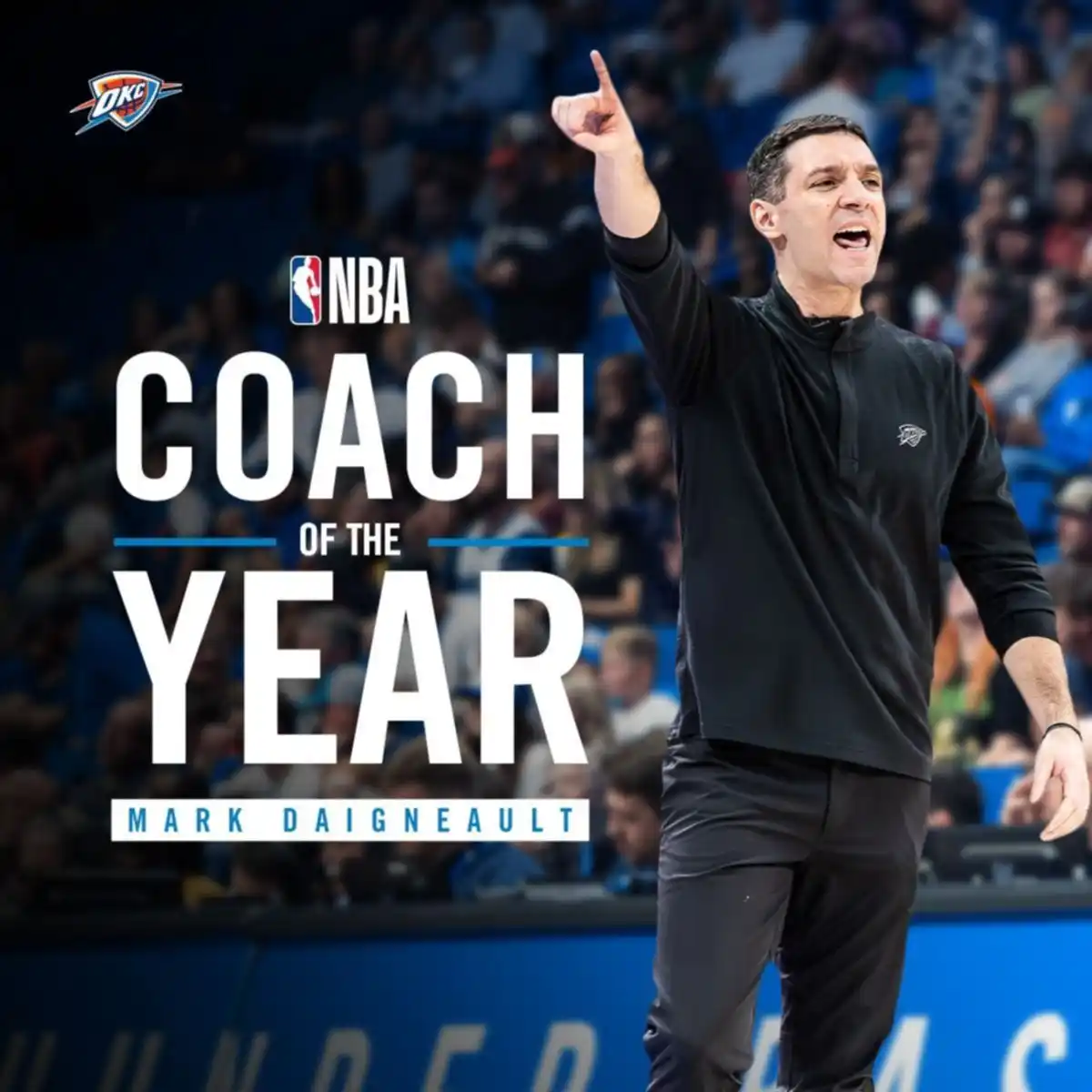 Finalmente, el ganador fue Daigneault, líder de un equipo que finalizó la temporada regular con 57 victorias y 25 derrotas, siendo el primero de la Conferencia Oeste (empatado con Denver Nuggets). El coach de los Thunder, que era el máximo candidato, obtuvo 473 puntos en la votación. Lo siguió Mosley, con 158, y tercero quedó Finch, con 105. El entrenador de 39 años es el principal responsable de un equipo joven y revolucionario que domina las estadísticas y cuenta con un candidato al MVP de la NBA.