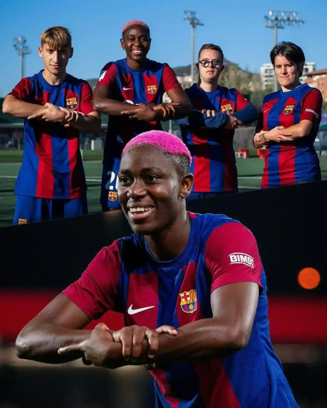 En este caso fue el turno de Aitana Bonmatí, la última ganadora del Balón de Oro, y Oshoala, figura del equipo Cule. Ambas jugadoras se pararon frente a la cámara y estiraron sus dos brazos entrelazados, en un mensaje de unidad.