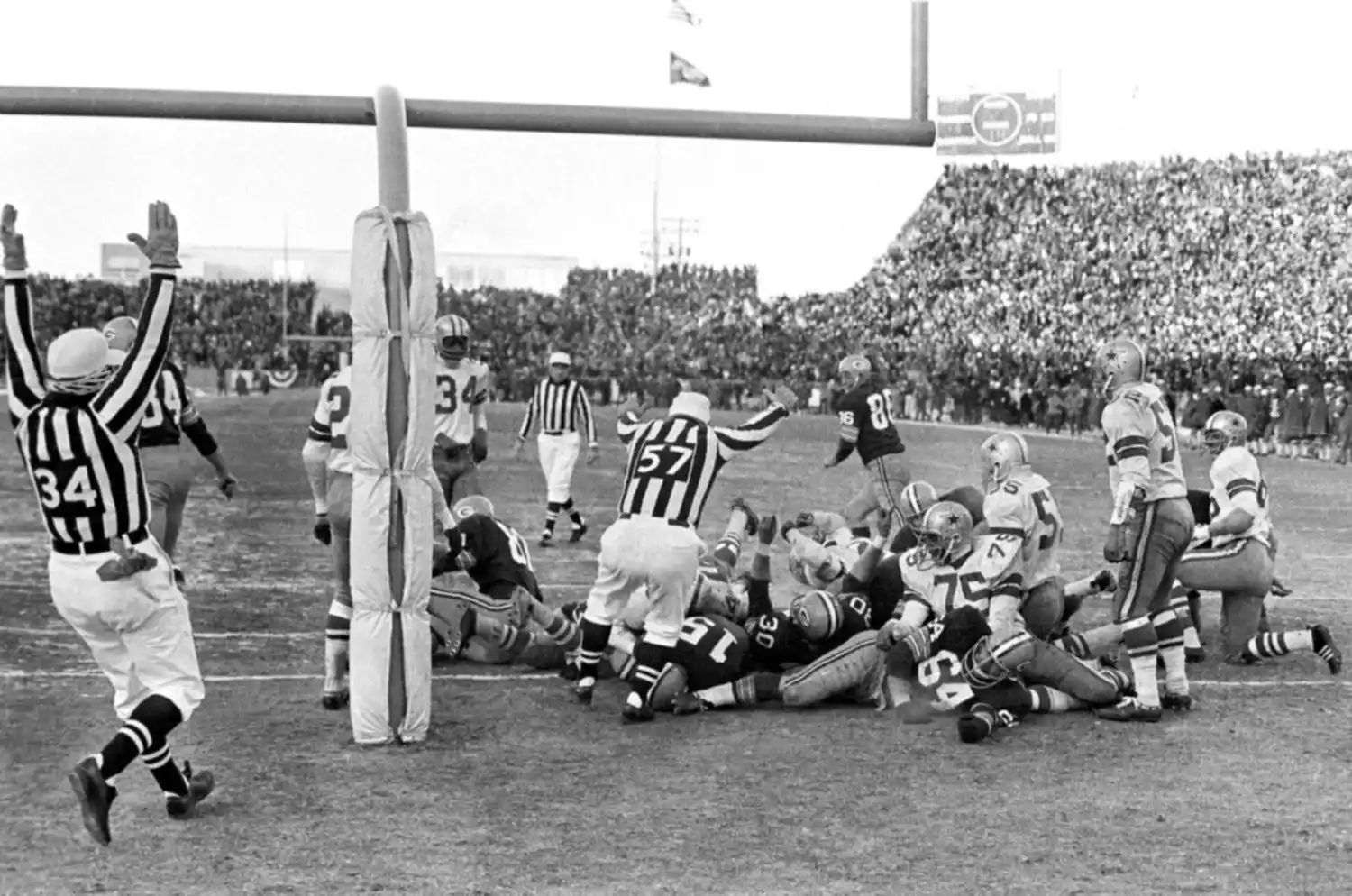Para recordar el segundo partido más helado de la NFL hay que remontarse a 1967. Los Green Bay Packers enfrentaban a los Dallas Cowboys por el Juego de Campeonato. El encuentro, que luego sería conocido como el “tazón de hielo”, sufrió una sensación térmica, por momentos, de -44º. Los Packers salieron victoriosos tras una corrida de Bart Starr sobre el final que decretó el 21-17 y un nuevo título para el entrenador Vince Lombardi, cuyo nombre lleva actualmente el trofeo de la NFL.
