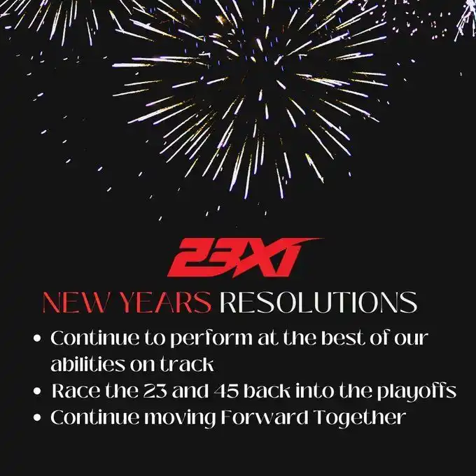 Con la temporada 2024 en el horizonte, el equipo ha declarado sus objetivos y no son menos ambiciosos que antes. El primero de enero, 23XI Racing dio un saludo a su comunidad a través de X que decía: "Trayendo 2️⃣0️⃣2️⃣4️⃣ con algunos propósitos de año nuevo ? ?"