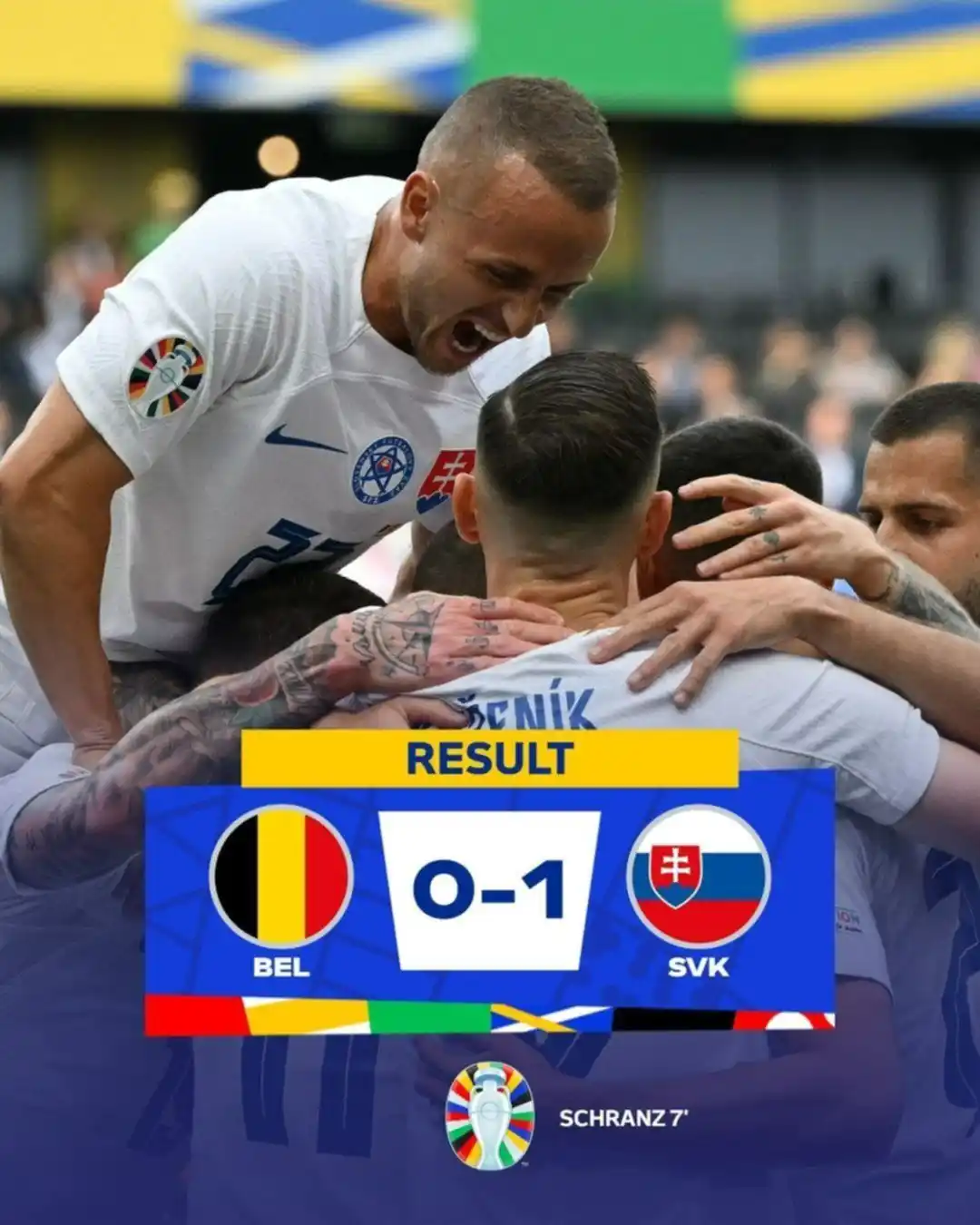 La selección de Bélgica cayó sorpresivamente en el debut de la Eurocopa frente a Eslovaquia en Frankfurt.