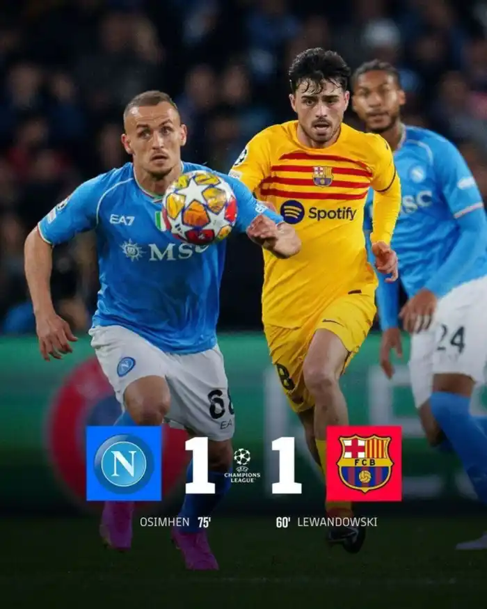 Cabe destacar que el FC Barcelona dominó gran parte del encuentro y la victoria se le escapó en el último tramo del partido. El gol del equipo Blaugrana llegó en los pies del histórico artillero polaco, Robert Lewandowski, mientras que para el conjunto napolitano marcó su goleador, Víctor Oshimen