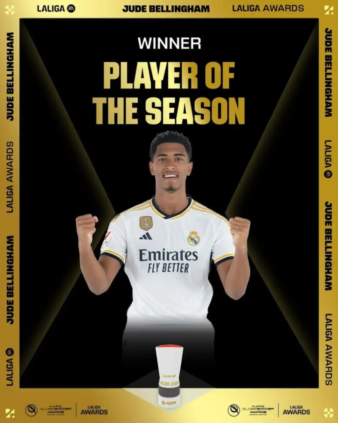 Bellingham no solo fue nombrado mejor futbolista de LaLiga esta temporada, sino que también se quedó con el Golden Boy, otorgado por la revista italiana Tuttosport (premio al mejor futbolista europeo menor de 21 años) y con el trofeo Kopa (premio al mejor futbolista menor de 21 años de cualquier nacionalidad), otorgado por la revista francesa France Football. Además, el inglés es un fuerte candidato a quedarse con el Balón de Oro de este año.