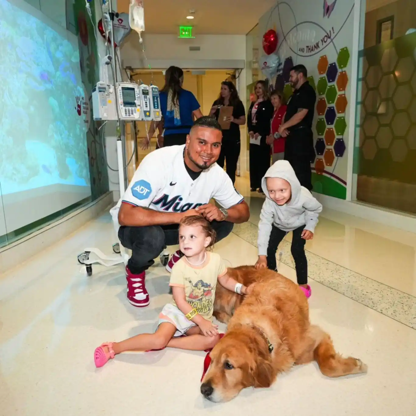 El destacado campeón de bateo de los Marlins de Miami, Luis Arráez, decidió compartir con varios niños que luchan contra el cáncer en el hospital Joe DiMaggio de la ciudad de Hollywood, ubicado en el estado de la Florida.
