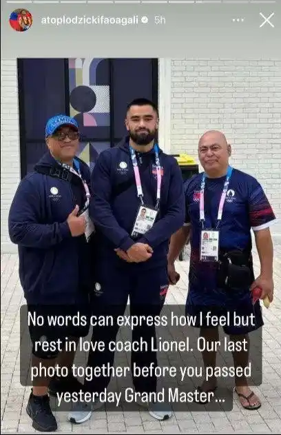 "Conocí al entrenador Lionel cuando tenía 15 años y estaba haciendo pruebas para el equipo juvenil de Samoa. Era un entrenador amable y generoso, no solo con su tiempo y sus cosas materiales, sino también con sus conocimientos", dijo la atleta olímpica.