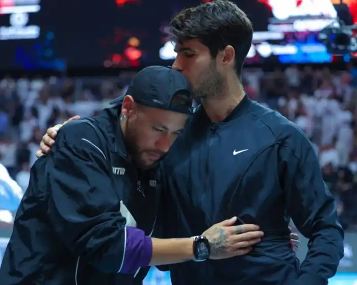 Neymar primero bajó a la pista luego del triunfo de Alcaraz sobre Rune por los cuartos de final y ambos se dieron un abrazo, charlaron unos minutos y lanzaron juntos algunas pelotas hacia la tribuna antes de que el de Murcia diera su entrevista. Pero en el partido siguiente la calidez fue aún mayor. Alcaraz enfrentó a Nadal en semis (ganó 6-3 y 6-3 y ahora se verá las caras con Sinner, que derrotó a Djokovic) y allí estuvo de vuelta el ex Santos y Barcelona para dejar lo suyo.