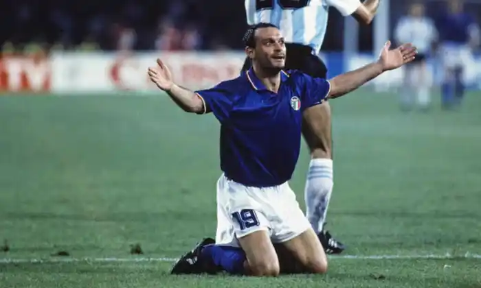 Claro que falta un episodio central en su historia, sin el cual tampoco se estaría escribiendo esta. Schillaci “se metió por la ventana”, como dice la jerga, al Mundial de Italia 90. No brillaba para nada en Juventus, pero Azeglio Vicini, entrenador de la Azzurra, apostó por él como una alternativa de la delantera titular que conformaban Andrea Carnevale y Gianluca Vialli. Las vueltas de la vida hicieron que un joven prodigio llamado Roberto Baggio y este desconocido goleador les robaran sus puestos. Schillaci entró como suplente en el primer partido del Mundial ante Austria y 3 minutos después anotó el necesario 1-0. “El salvador de Italia”, lo llamaron. Y aún faltaba casi todo.