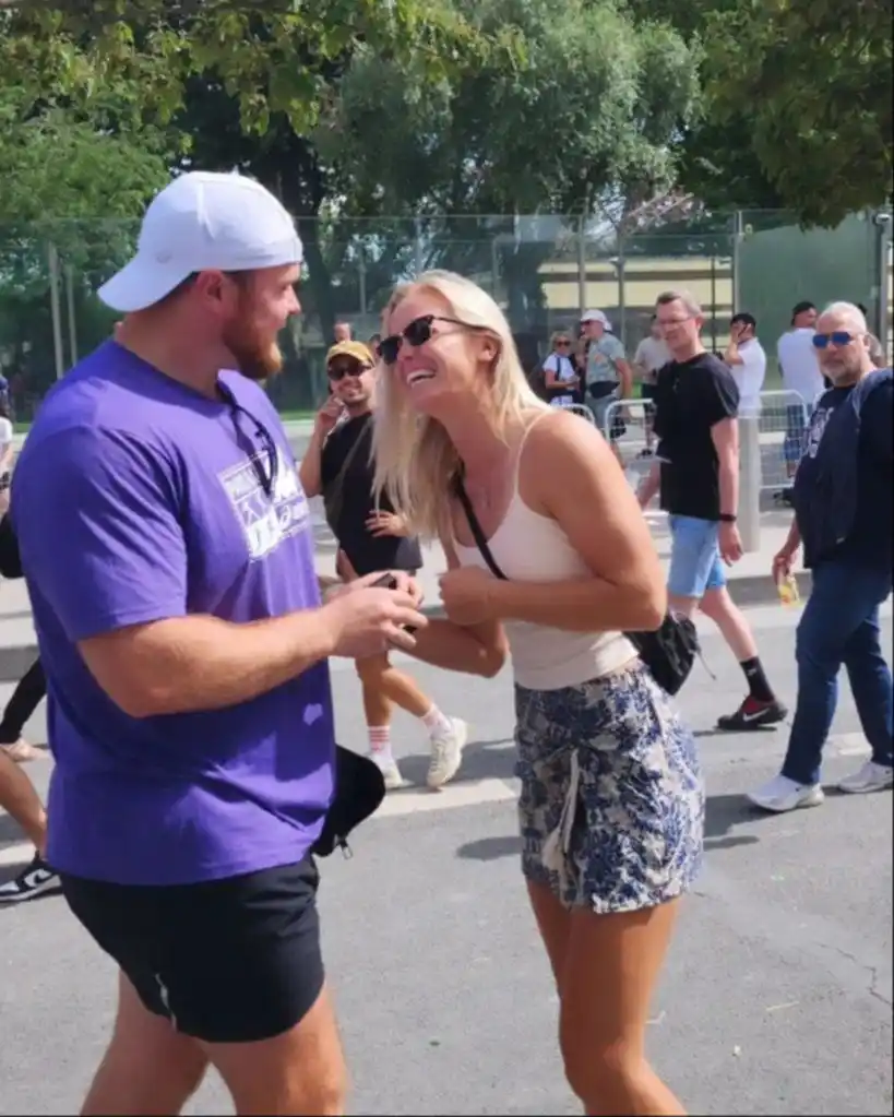 La pareja vestía atuendos casuales en las imágenes: Otterdahl llevaba una camiseta violeta, pantalones cortos negros y una gorra de béisbol al revés, mientras que Nilles vestía una camiseta blanca sin mangas y una falda estampada.