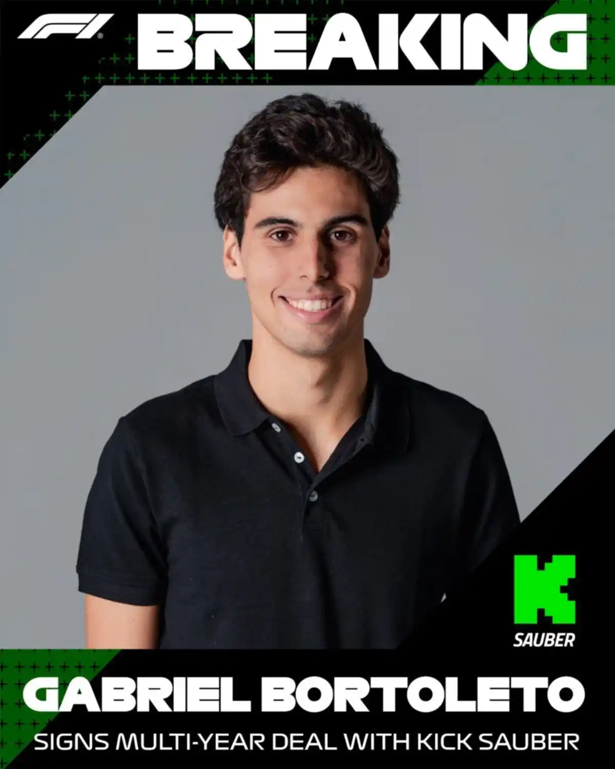 La escudería Kick Sauber confirmó lo que se sospechaba: que el brasileño de 20 años Gabriel Bortoleto, actual líder de la Fórmula 2, será el piloto del equipo de Fórmula 1 en 2025. Acompañará a Nico Hulkenberg, y Guanyu Zhou y Valtteri Bottas ya no serán parte del equipo con base en Suiza. Se trata de uno de los pilotos con mayor proyección, que fue campeón de la Fórmula 3, fue "apadrinado" por Fernando Alonso y tiene el apoyo de Neymar Jr.