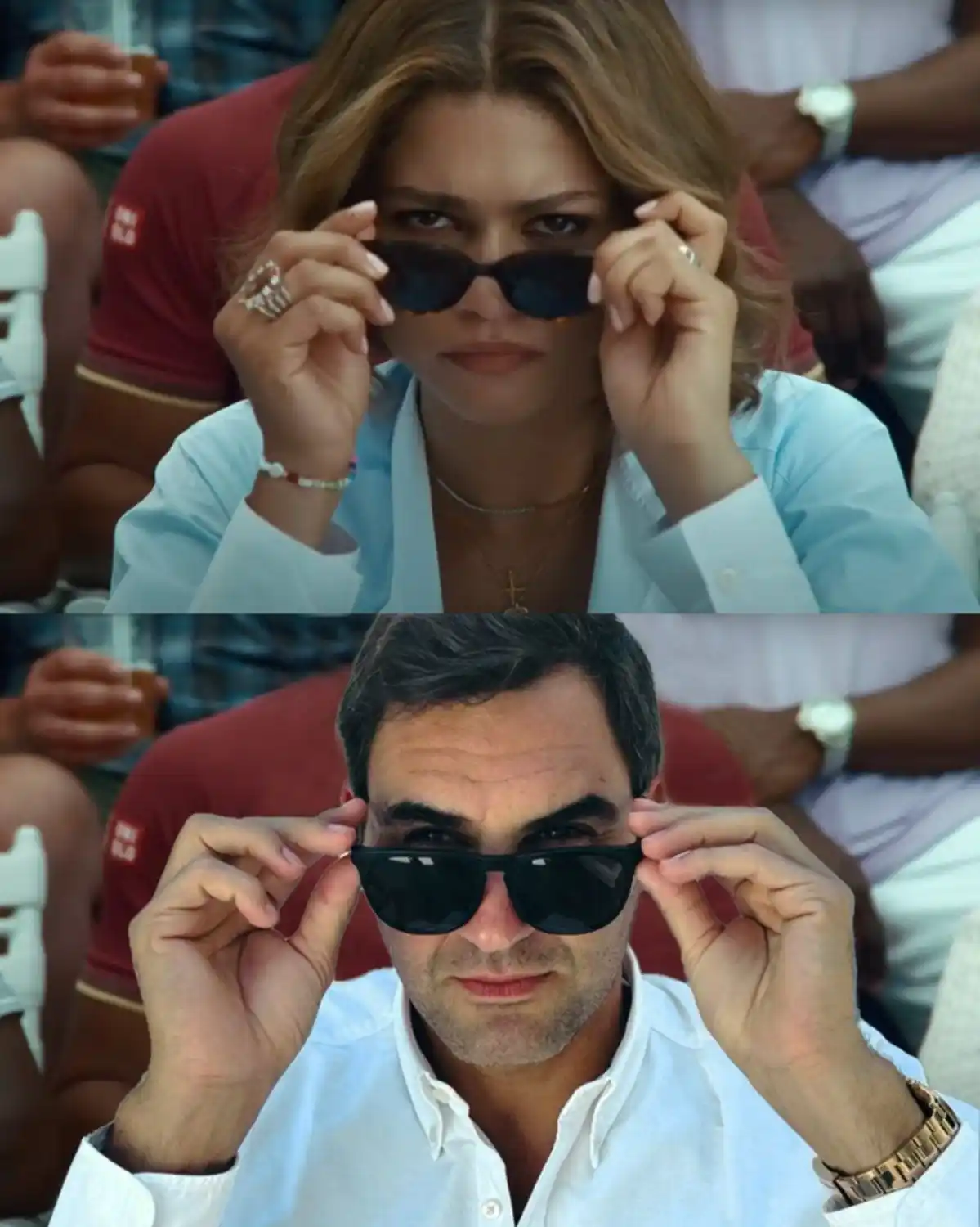 La leyenda del tenis acudió a su cuenta de Instagram para compartir una foto de sí mismo posando en la misma pose que tomó Zendaya, la escena icónica en la que ella estaba sentada en el estadio, y se deslizó las gafas hasta la nariz. Después de ese collage, indicando cuánto adoraba Federer esa representación en particular, escribió: "Es @on".