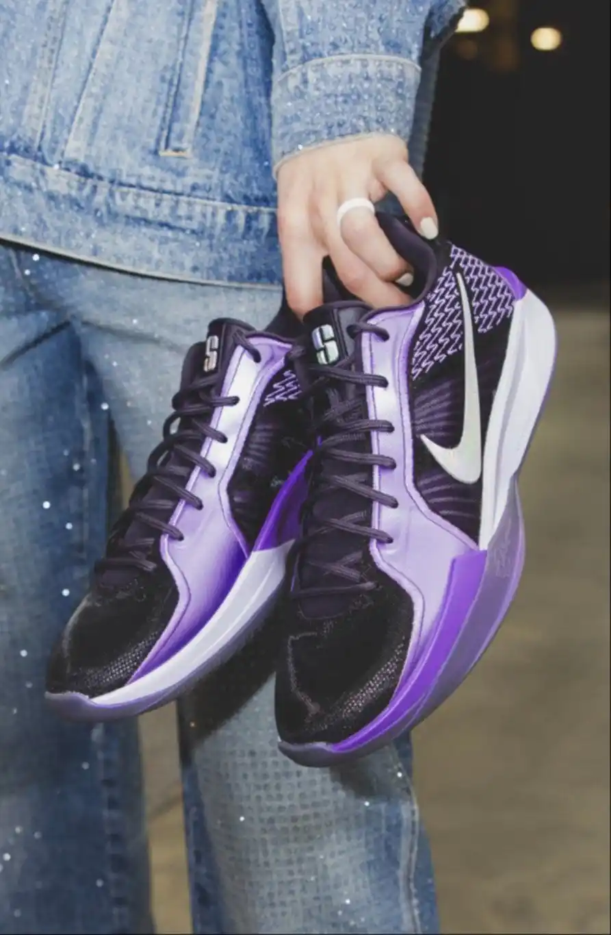 El tema de color púrpura de los zapatos combina bien con los encantadores patrones de diseño retro, que les dan un aspecto clásico. Nike ha etiquetado el zapato como Sabrina 2 "Court Vision", afirmando que son perfectos para los armadores.
