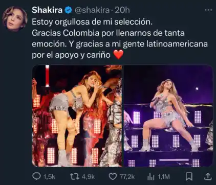 Shakira, además de su presentación musical, dejó un mensaje de ánimo a la selección y a sus seguidores a través de sus redes sociales, reafirmando su conexión y cariño por su país natal y su gente.