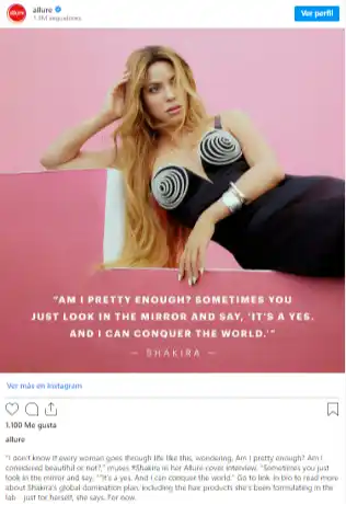 En cuanto a los estándares de belleza, Shakira reconoció que ha utilizado su sensualidad como una forma de expresarse en el escenario, pero que confía en otras habilidades más allá de la belleza física.