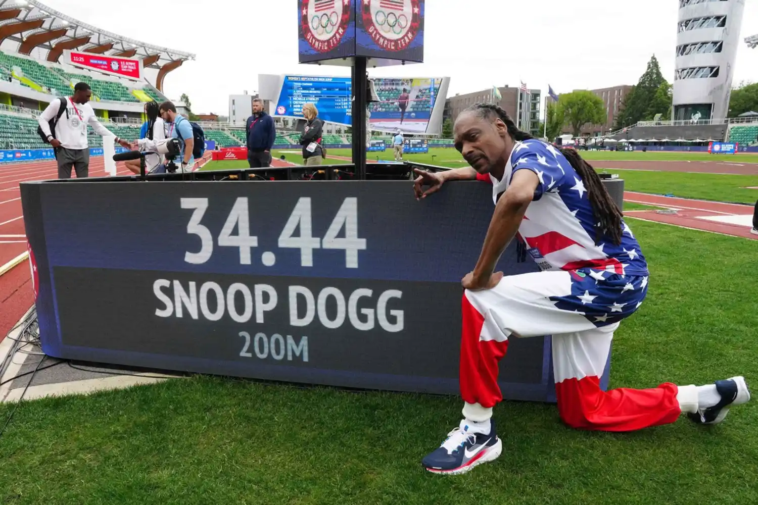Snoop Dogg se está tomando en serio su prestigioso papel de corresponsal invitado olímpico. En junio, participó en una prueba de 200 metros en Oregón, luciendo una camiseta del equipo de EE. UU. en honor al fallecido Kobe Bryant y pantalones con la bandera estadounidense. Aunque terminó en un distante tercer lugar con un tiempo de 34,44 segundos, su participación demostró su compromiso y entusiasmo por el evento.