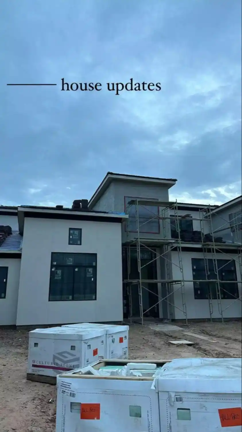En octubre de 2023, compartió una fotografía exterior de la casa que incluía sus numerosas ventanas y un techo sin terminar. También ofreció un vistazo de su "vista favorita" desde las grandes puertas corredizas de vidrio que se abren a lo que parece ser un patio trasero.