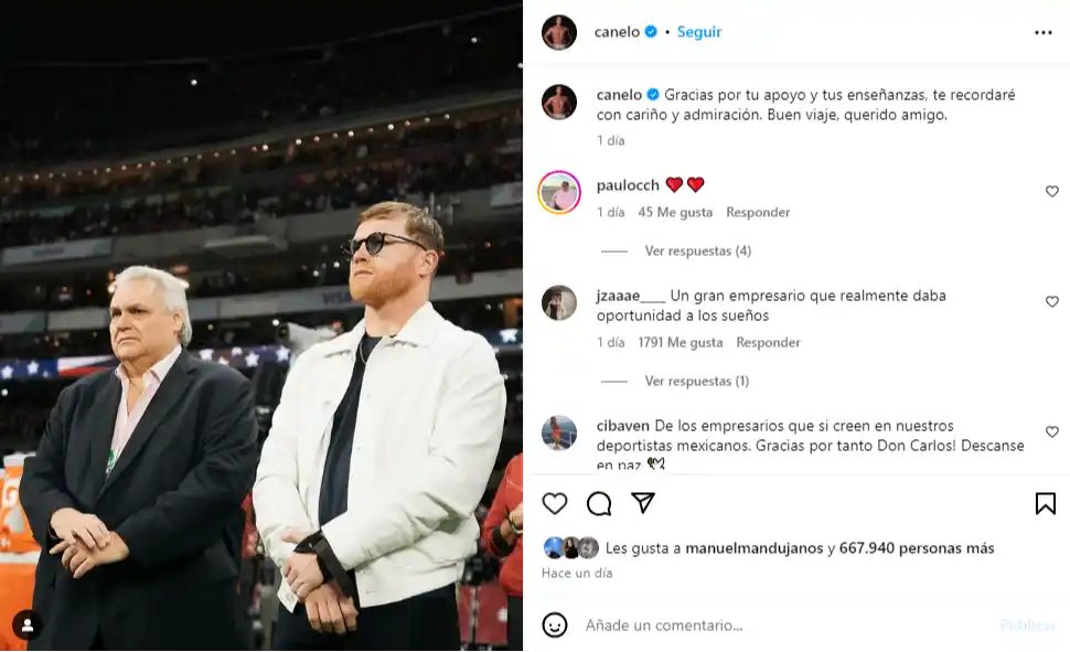 El "Canelo" envió un mensaje a través de sus redes sociales para despedir al empresario que, además, era juez del programa "Shark Tank México" y un gran aficionado al deporte como el box y el beisbol.