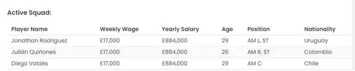Mientras que en América, Rodríguez, Valdés y Quiñones comparten los mejores salarios, en Tigres solo hay un jugador que puede considerarse "mejor pagado" pues, según el sitio especializado, su salario es al menos el doble del segundo jugador con mejores ingresos en el equipo de Monterrey.