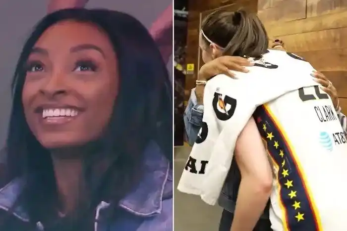 Después del juego, Clark y sus compañeros de equipo conocieron a Simone Biles y a la estrella del atletismo olímpico Gabby Thomas, de 27 años, quien los saludó con abrazos y sonrisas.
