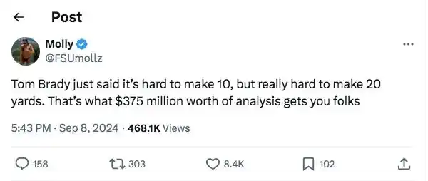 Brady estuvo junto a Kevin Burkardt en la cabina de Fox en la victoria del equipo de Dak Prescott por 33-17. No pasaron 20 minutos hasta que en redes sociales le llovieron críticas por sus errores a la hora de elaborar frases complejas o por un análisis chato. Muchos manifestaron que extrañaban a Olsen y que “deberían haber escuchado a Brady hablar antes de pagarle 300 millones de dólares”.