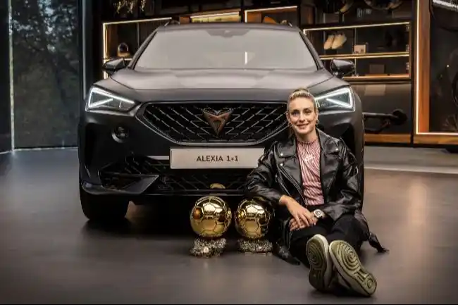 El coche que aparece en el video de la jugadora del Barca es un turismo de cinco puertas con caja automática, tracción trasera y una batería de iones con capacidad útil para 58 kWh. En el video Alexia exhibe sus dos Balones de Oro ganados en las temporadas 2021 y 2022 junto al coche de CUPRA, marca que la ha apoyado desde un inicio.